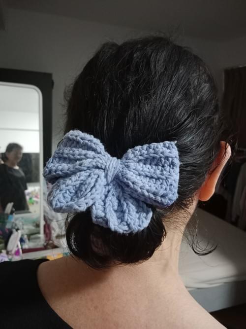 I absolutely love my crochet butterfly hair tie! It is a unique design and complements my pleats well.