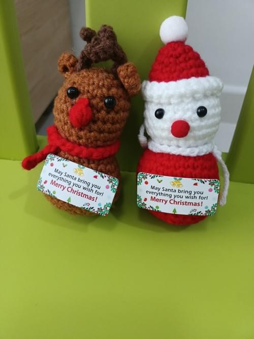 Merry X- Mass Reindeer & snowman- message amigrumi