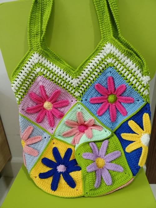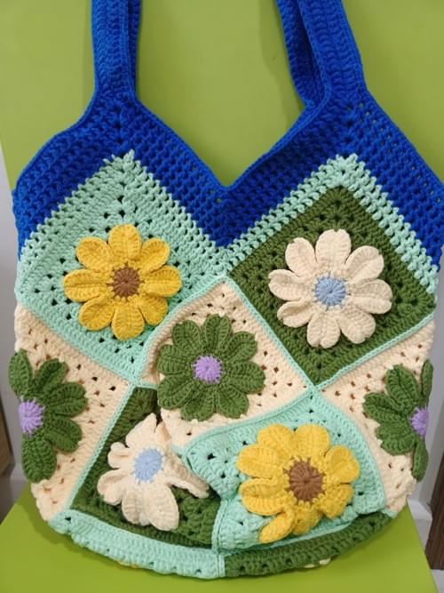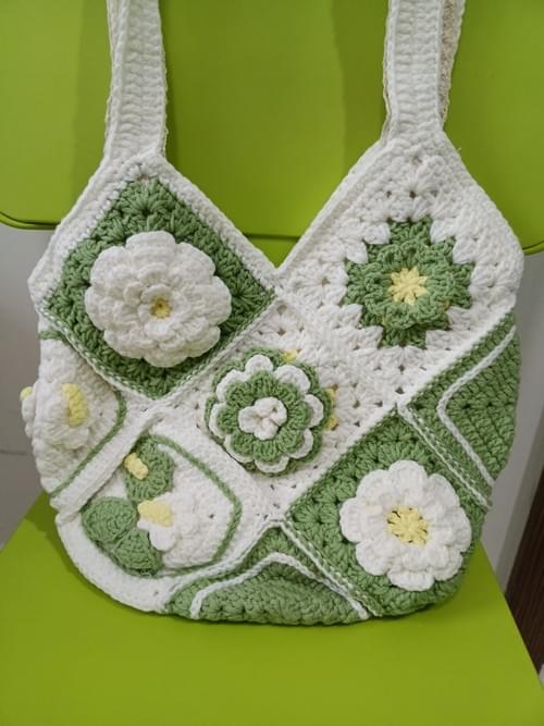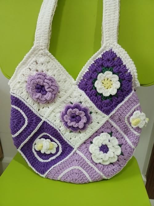 Floral square pattern crochet bag in 2 hue