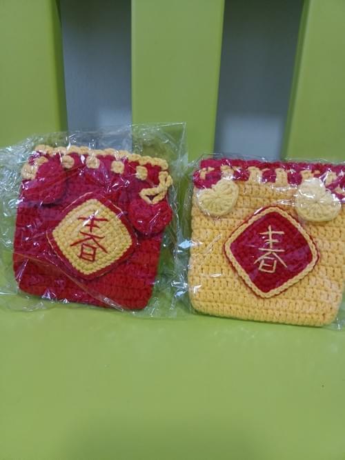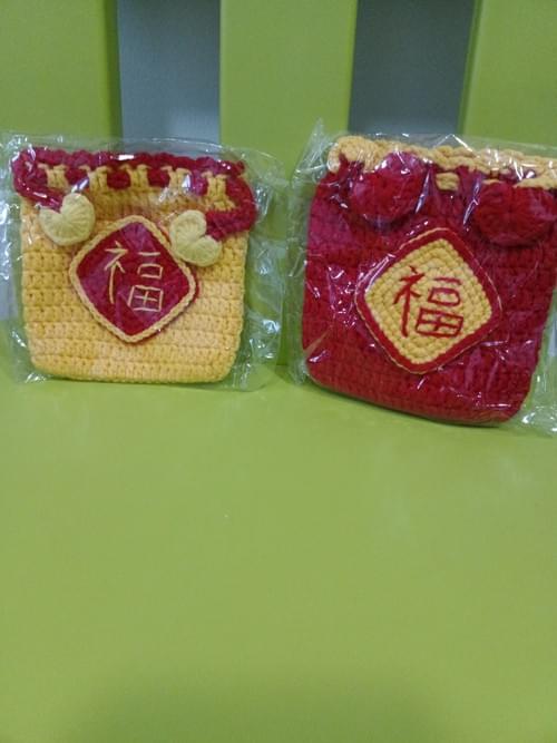 Fu 福 Small crochet pouch in 2 hues