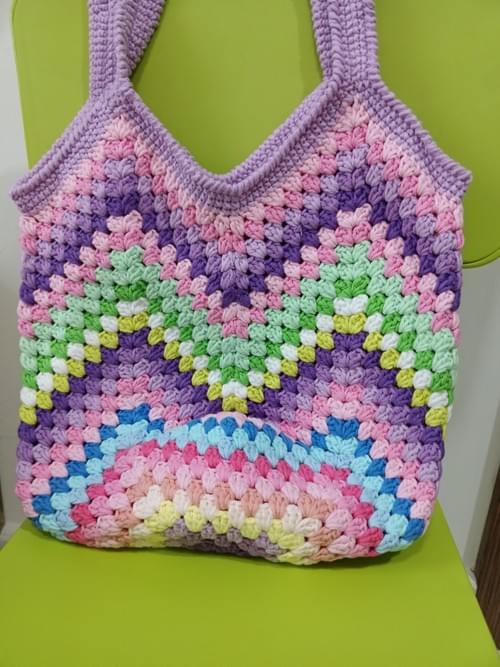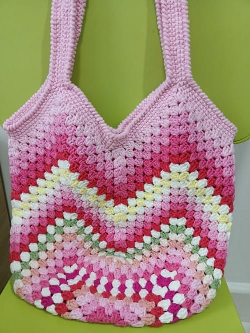 2 color V shape crochet bag in 2 hues