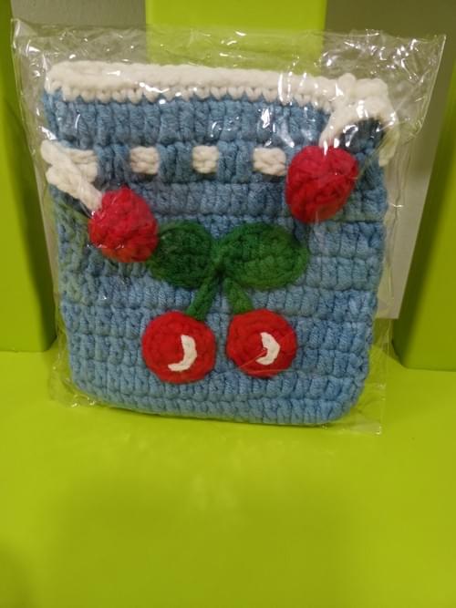 Cherry small crochet pouch in blueQuantityComing soon