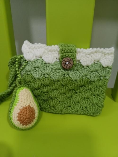 Carrot small crochet pouch in green hue