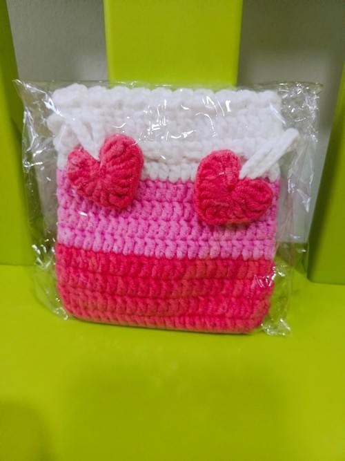 Heart crochet small pouch in pink hue