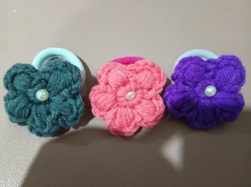 Floral Crochet Hair Ties in Pink, Blue & Purple Hue