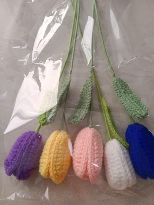 Tulip Crochet with stalk and leaves